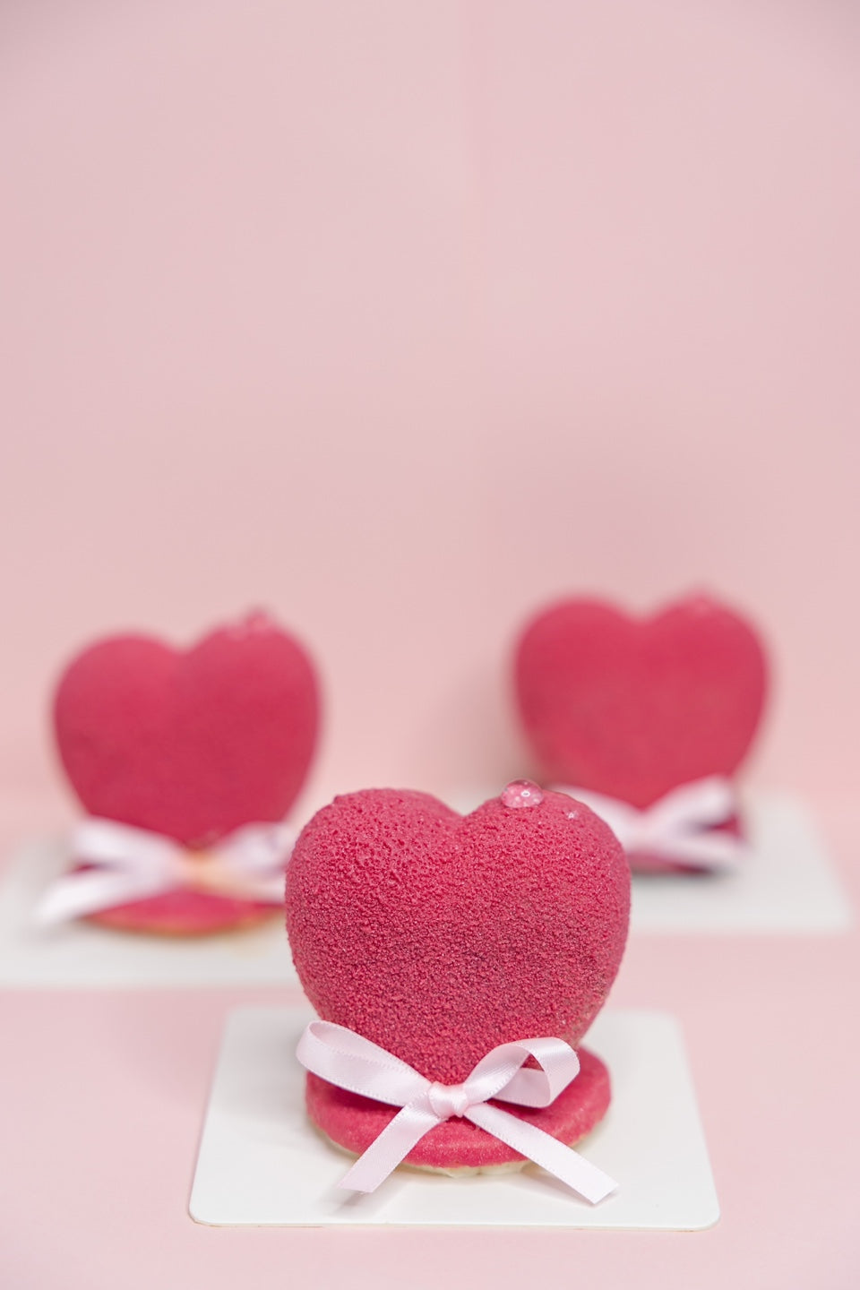 Indulge in our delicate heart-shaped mousse cake, crafted with:
